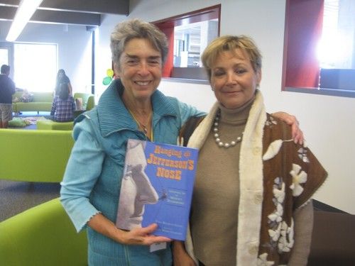 Jodi Shapiro, VCRA Board Member and local author, with YAF Featured Author Tina Nichols Coury showing off Tina’s NEW book Hanging Off Jefferson's Nose: Growing Up on Mount Rushmore.